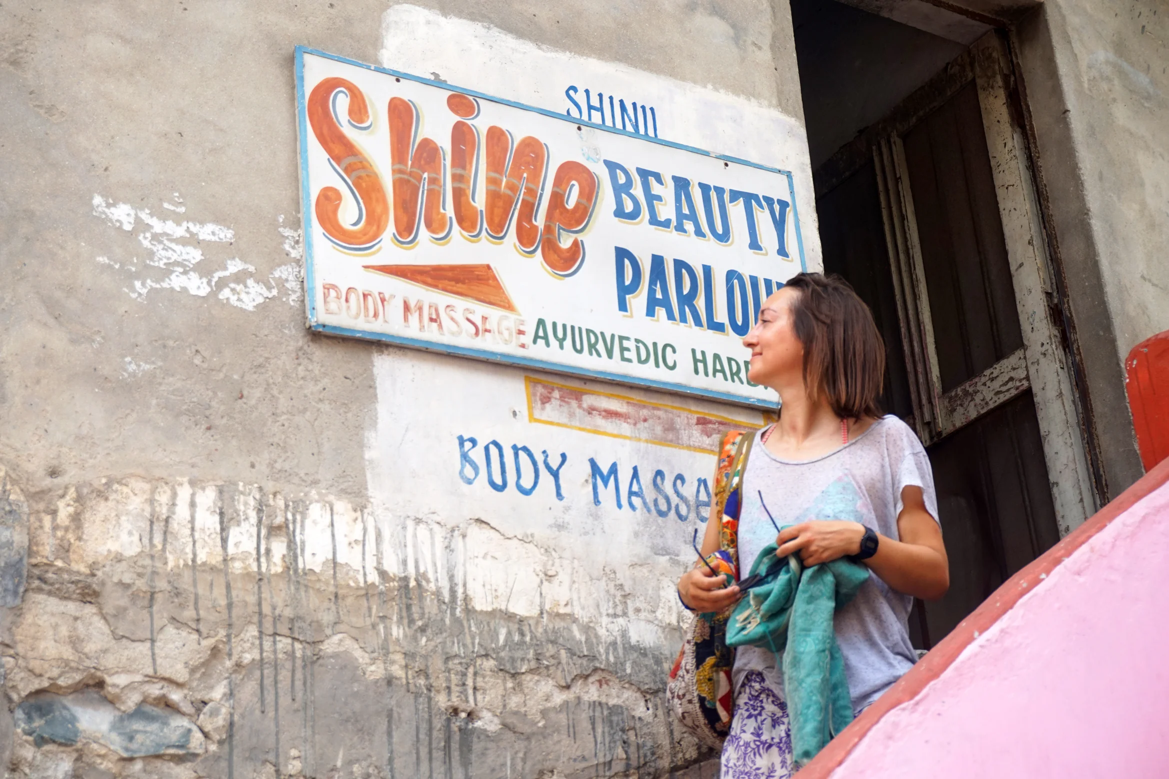 Happy Birthday Helen was the order of today. I slipped out in the early hours to pick up a few bits and arrived back round half eight laden with tasty stuff from the bakery, and some presents. I found Helen on the balcony watching the world go by. We stuffed ourselves with baked goodness, then it was time for the grand opening. All the trip we have seen hippy western travellers wondering around in massive floaty elephant print pants. Many a joke has been made about their appearance and so it only seemed fitting to get Helen her first pair. Boy was she happy to see them. She was even more over the moon when she saw how well they were made. Her favourite detail was the miss-aligned pockets if I recall her shouting correctly. However folded between those pretty purple elephants was a silver necklace that I picked up in Vashist a week or so back while Helen was climbing. It went down well, this was a big relief.
