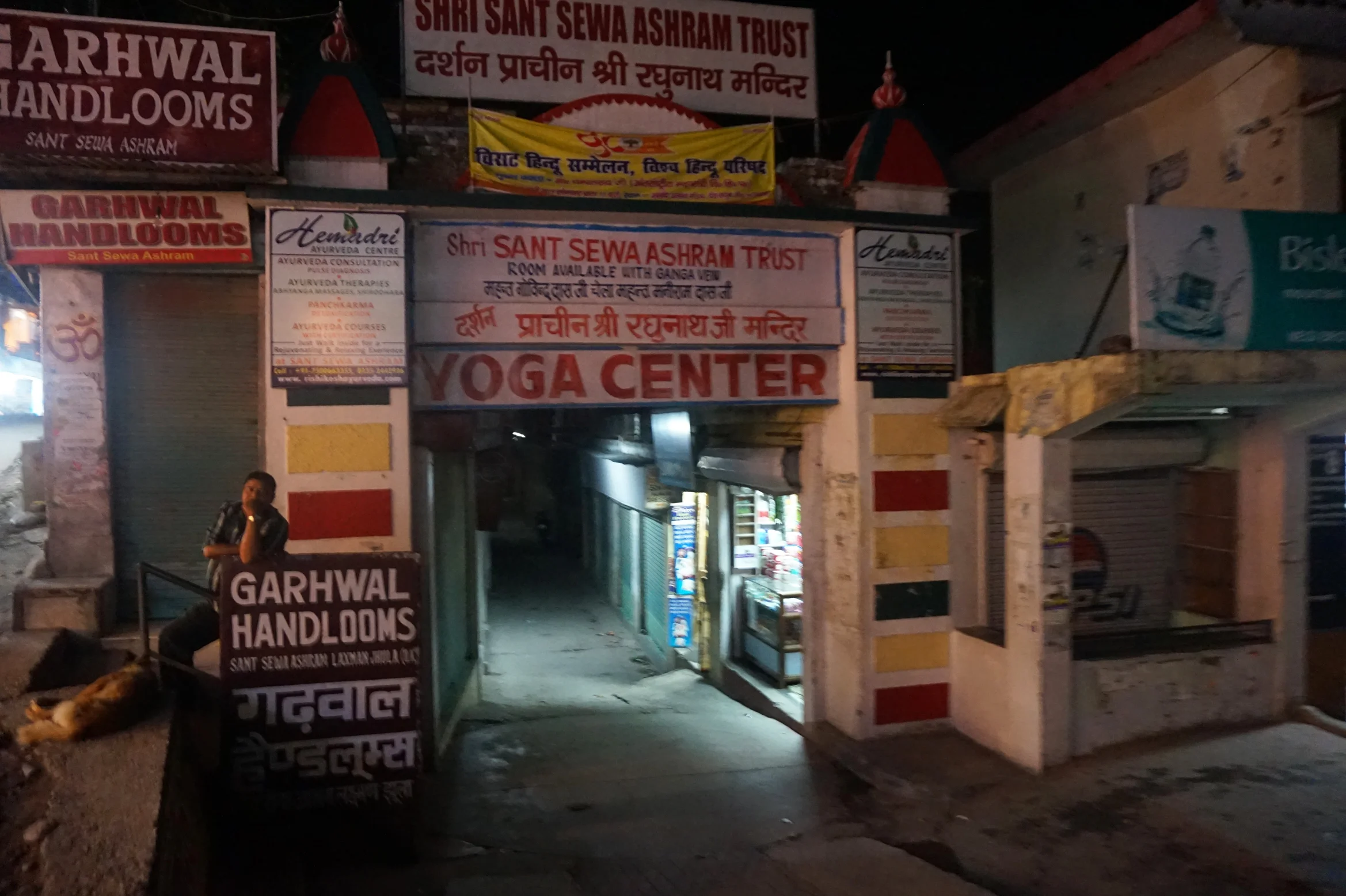 A storm had started to gather up in the mountains, lighting up the hillside every now and then. Over the next hour or so the winds picked up and all of a sudden the storm was at our doorstep. Rain battered our windows and started trickling into the room. Then thunder roared so strong and loud you could feel it in your bones. We stood on the balcony to watch the light show. Literately ever three of four second the foothills and valleys were illuminated as clear as day. We eventually retreated to the ashrams cafe and waited it out, eating whatever they could cook by candlelight as the power was out.