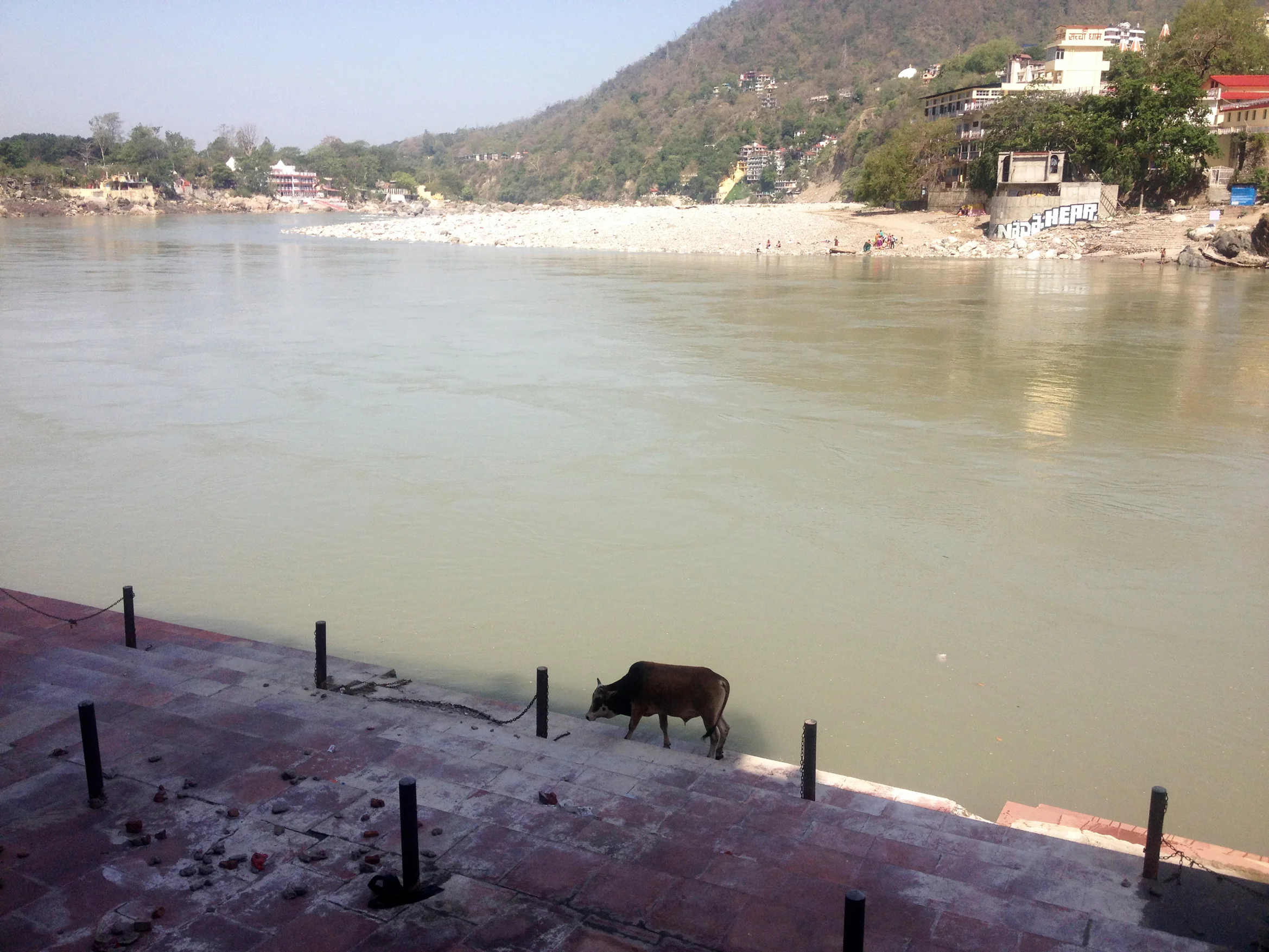 As Rishikesh is the yoga capital of India we decided to try the afternoon class, when in Rome and all that. Following the same principle it seemed only right to have a holy dip in India's holiest river. I wanted to go for a dip in Varanasi however the water there is some of the most polluted on the planet, however up here near the source I'm told it's much cleaner. Fingers crossed and mouths firmly shut we dived in, it was bloody cold, very refreshing and best of all, our sins were being washed away. Bonus! The Ganga is supposed to flow from Shivas hair, Shiva being the destroyer is the only God powerful enough to control the Ganga. It is said that if the Ganga was not controlled by Shiva it would wash away the whole world. This power was demonstrated a day later when a Indian man was caught out of his depth and drowned just outside our ashram. Apparently a lot of Indians drown each year as many can't swim but still come to bath in the holy waters. Still it is a big reminder of the power of nature. A local man I got chatting to said over 16 people had drowned this spring time already.