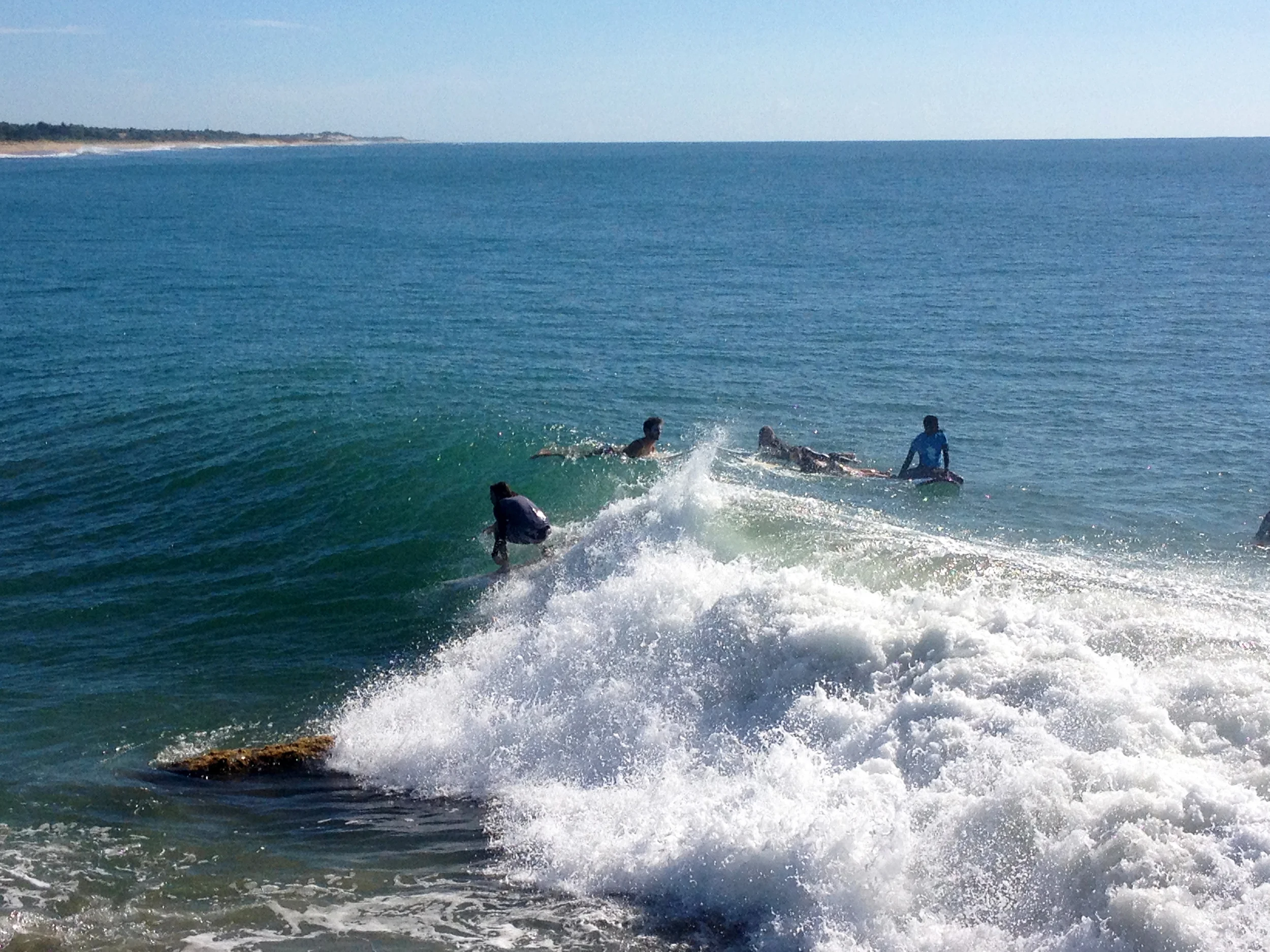 Next morning round six I crept out and walked round to the point. There was a fair number of people already in the water and competition for waves was fierce. I managed to bag a handful over the session but nothing compared to the locals and Aussies who were out in force. My last wave of the session was by far the best rolling for a couple of hundred meters along the point. As I picked my way out of the rocky shallows I saw Helen on the beach. We ate breakfast overlooking the break then headed back into town to check in to our new room that would be home for the next week or two.