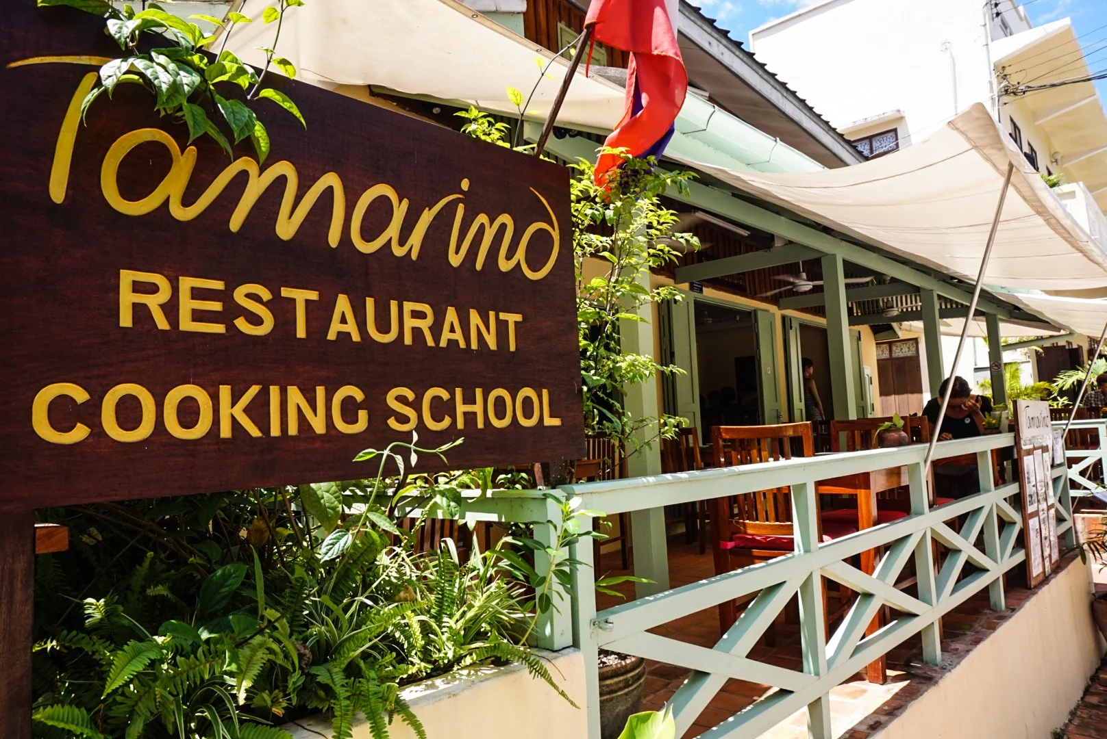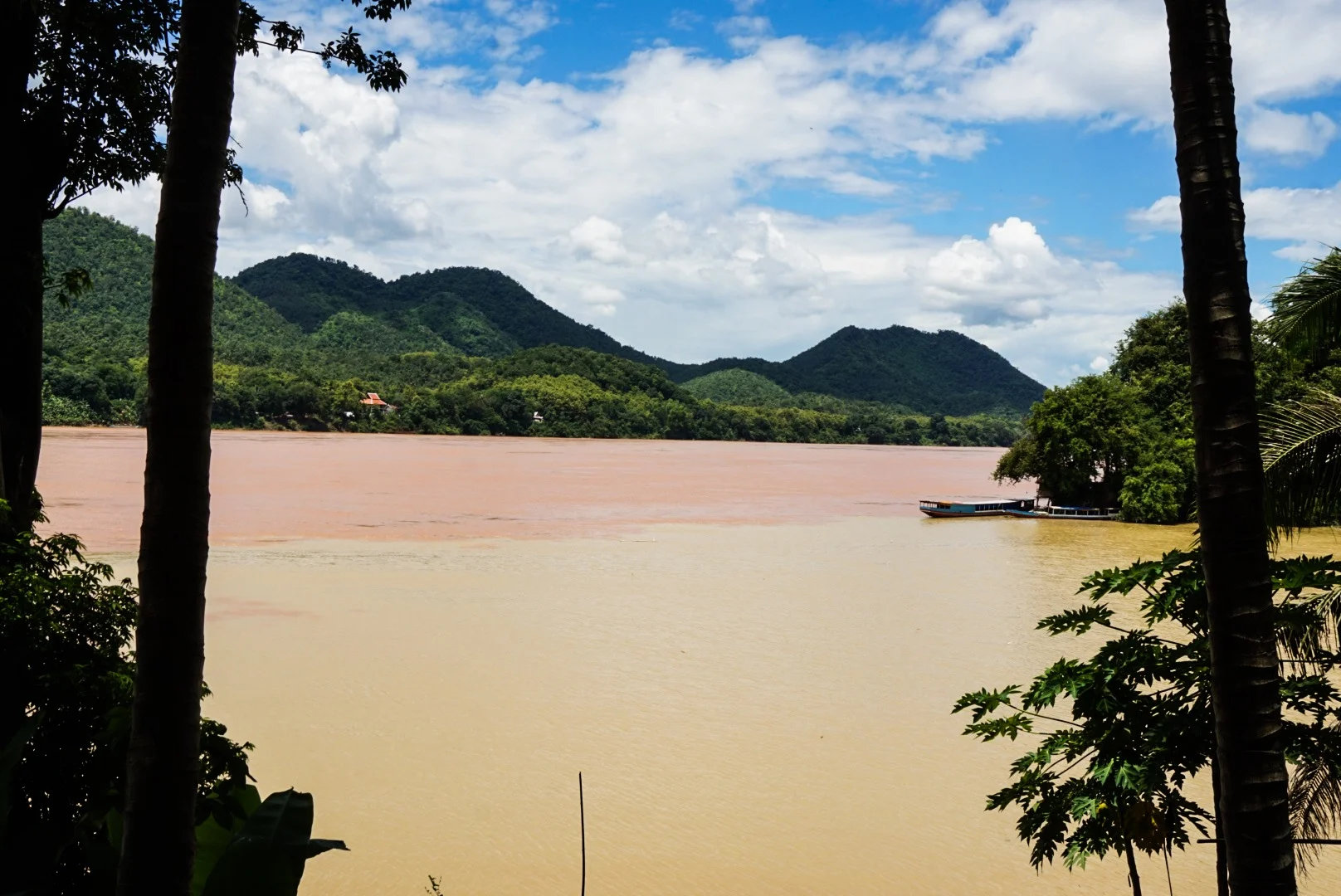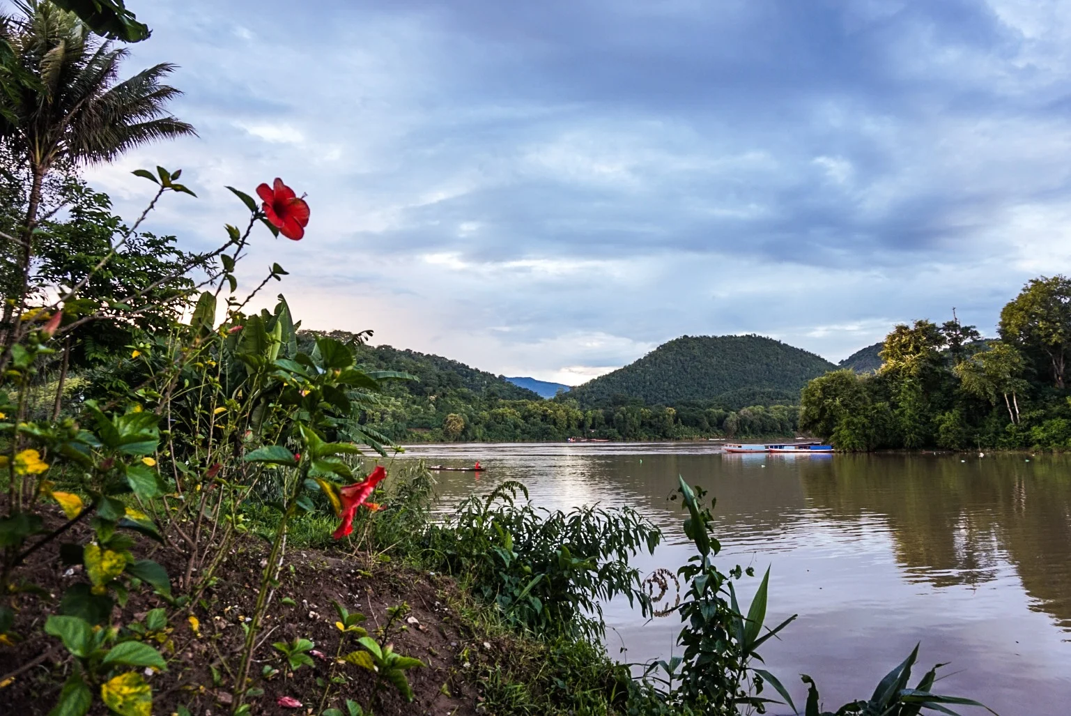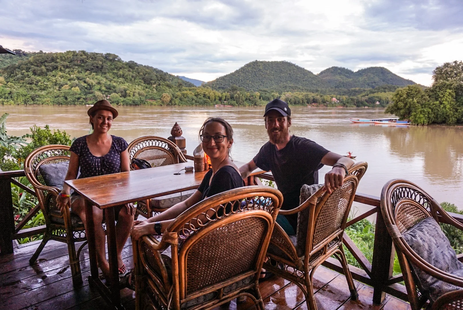 We walked to the end of peninsula and stopped at a posh bar/restaurant perched where a tributary meets the mighty Mekong and had a delicious mojito while the sun went down. The Mekong was a vivid orange/brown colour and the smaller river was much more clear, so where they met was a definitive line. We headed back in the direction of town, spotting a few gorgeous guest houses on the way down flowery crooked side streets - maybe we shouldn't have been so hasty to get rid of our bags!