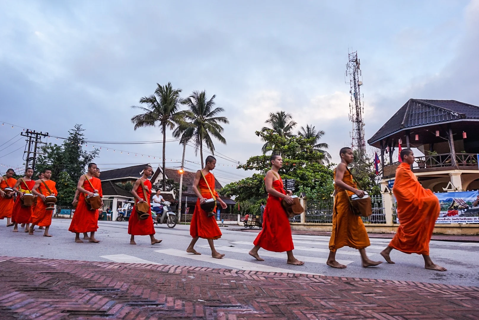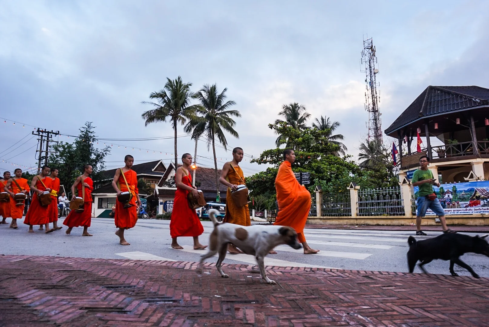 In recent times it has become a tourist circus, with far too many people not reading up about the customs and appropriate behaviour. There are many posters in the town that explain that you should only make an offering if it means something to you, that you should be appropriately dressed, that you should stand on the other side of the street to observe/take pictures, you shouldn't get too near a monk or stand in their way and you should be seated or kneeling so that you are lower than the monks. We saw many people completely disregarding this advice, and though it made me angry, I thought either they've not read up at all on what this is about - which seems unlikely because there are posters everywhere OR they do know and they have chosen to ignore the advice completely. Either way, it was extremely disrespectful.